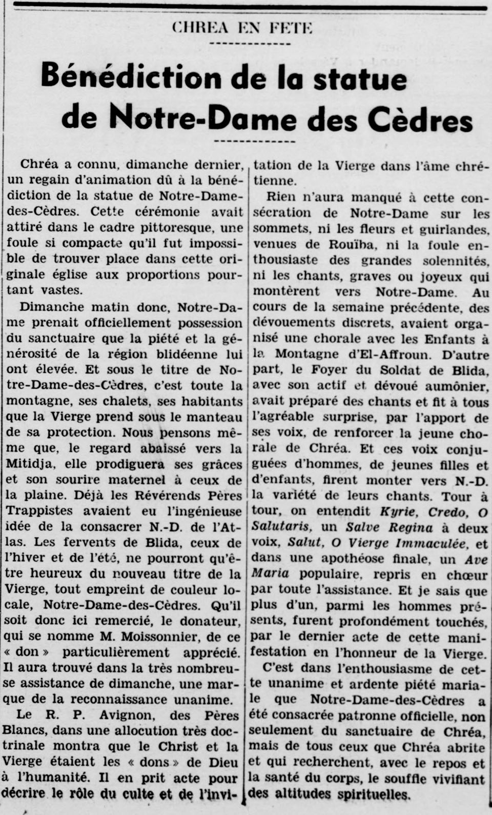 Inauguration de Notre Dame des Cèdres 21/10/1934